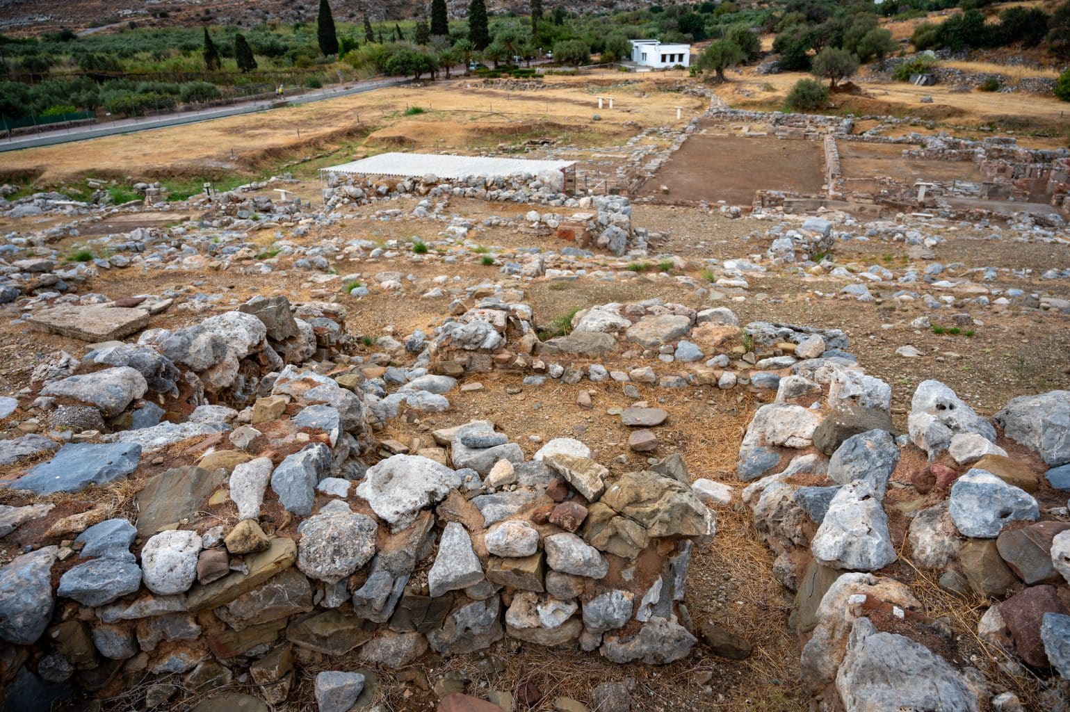 Der Palast war nahezu unberührt und nur teilweise geplündert. In den verwinkelten Wohnhäusern rund um den Palast wurden luxuriöse Tongefäße und kostbare Kristallvasen gefunden. Die wohlhabende Handelsstadt war ursprünglich ein minoisches Dorf, zu dem später Palast und Handelshafen hinzukamen.